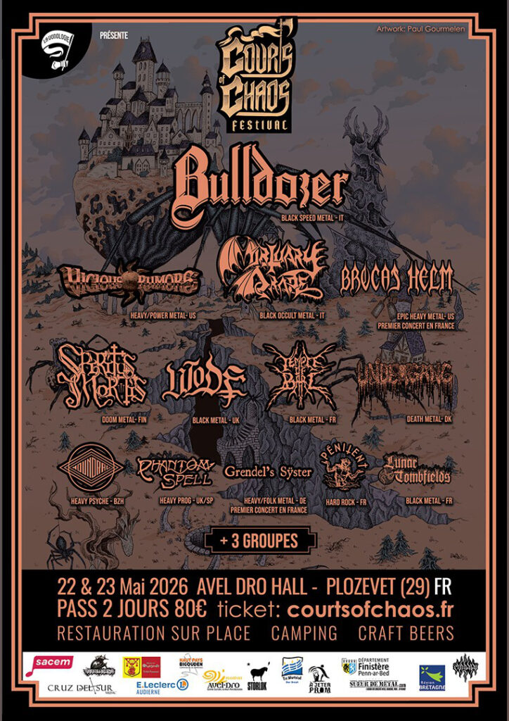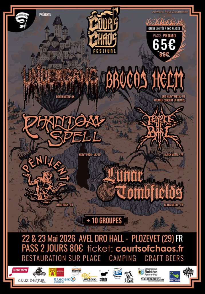 Le Courts Of Chaos Festival est un événement annuel de musique qui se concentre sur divers genres de metal, incluant heavy, death, black, doom, et thrash metal. Il présente une vingtaine de groupes de différentes nationalités. L’événement est organisé par l’association La Vonologie et met en vedette à la fois des groupes établis et des artistes émergents de la scène metal. Le festival se déroule sur deux jours principaux, précédés d’une soirée « Warm-Up » Il attire un public fidèle et croissant, avec une ambiance conviviale souvent décrite comme un « pèlerinage annuel » pour les amateurs de metal.